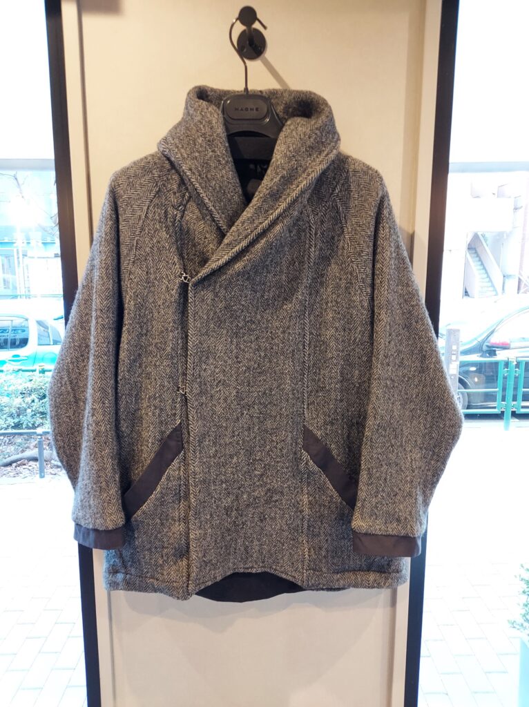 2度洗いされ縮絨したヘリンボーンは風を通しにくくなっています。きちんと感とラフな雰囲気を併せ持つ独特な雰囲気が魅力です。