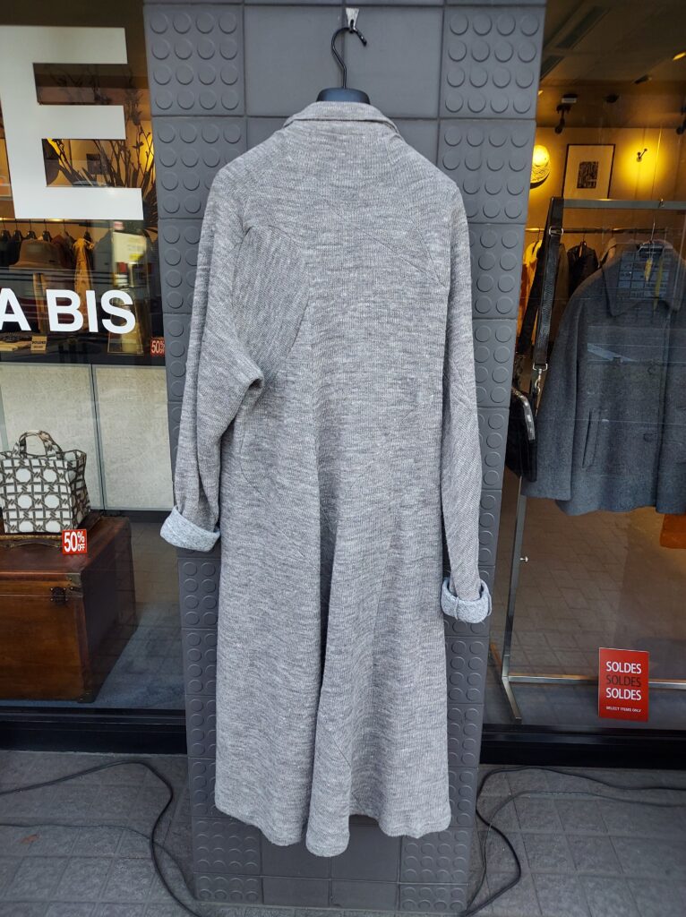 表はニットで裏はジャージーのように滑らかさで着心地◎、ロングカーディガンの気軽さとコートの格好良さを持つ逸品です。