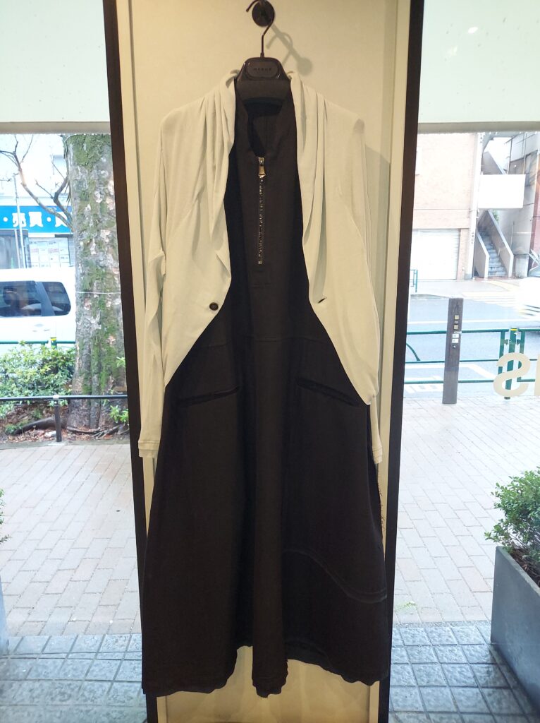 New Arrival強撚糸のきれい目カーディガンとファスナーが目を引くカジュアルなワンピースをセットアップ。
