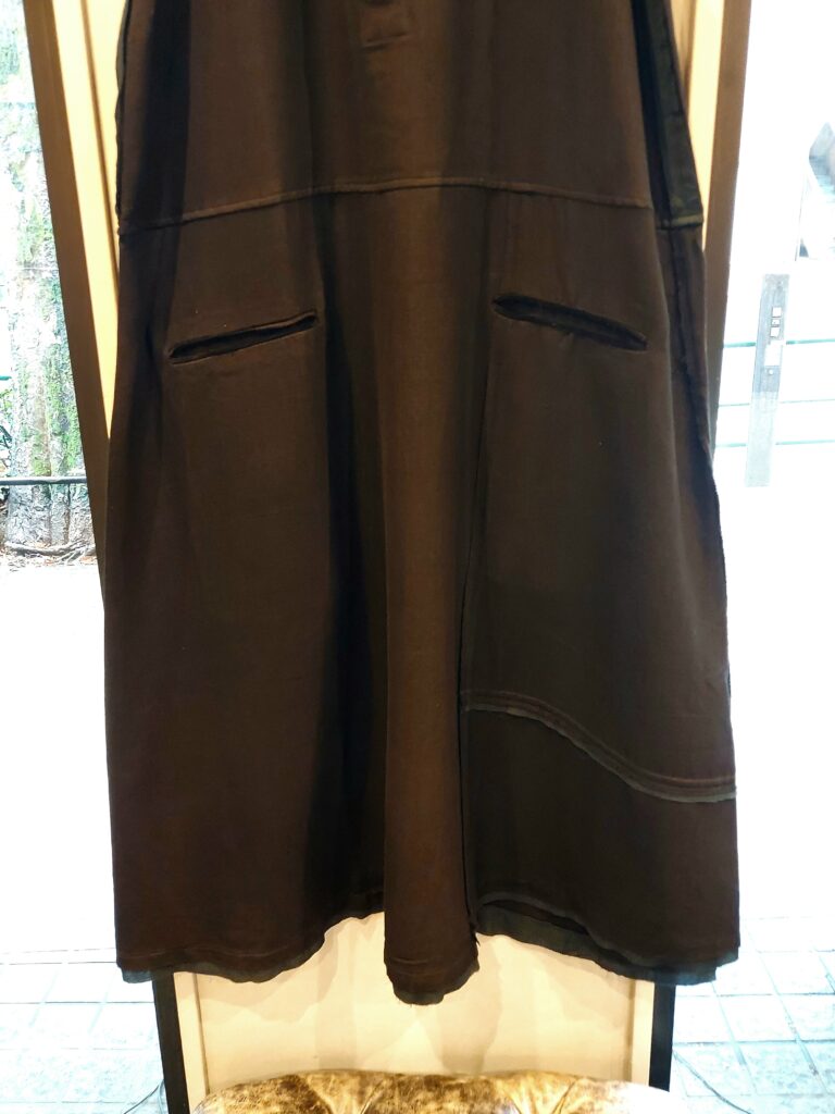 強撚糸のきれい目カーディガンとファスナーが目を引くカジュアルなワンピースをセットアップ。