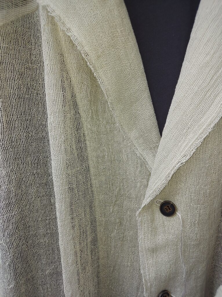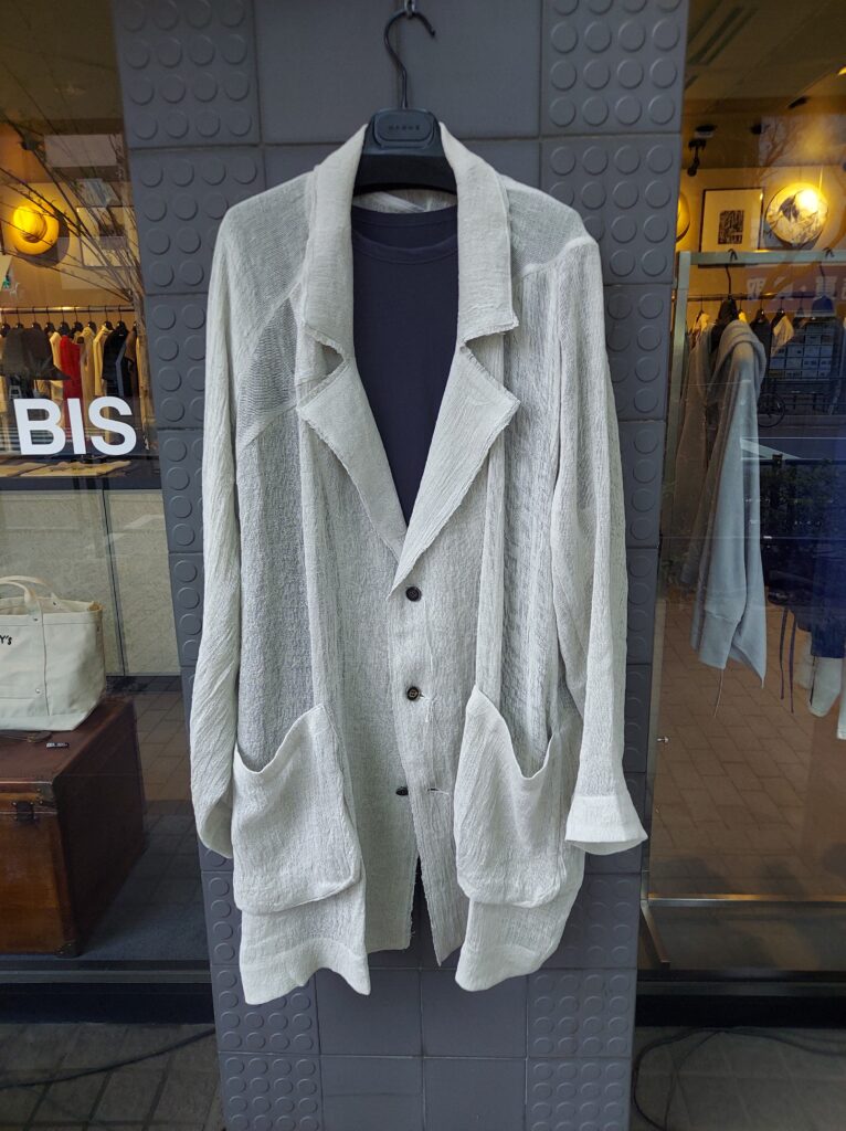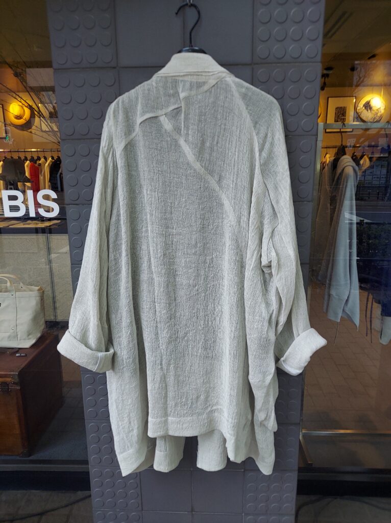 切りっぱなしの襟や大きなポケットなどラフさが魅力の、ざっくりとしたリネン・コート。