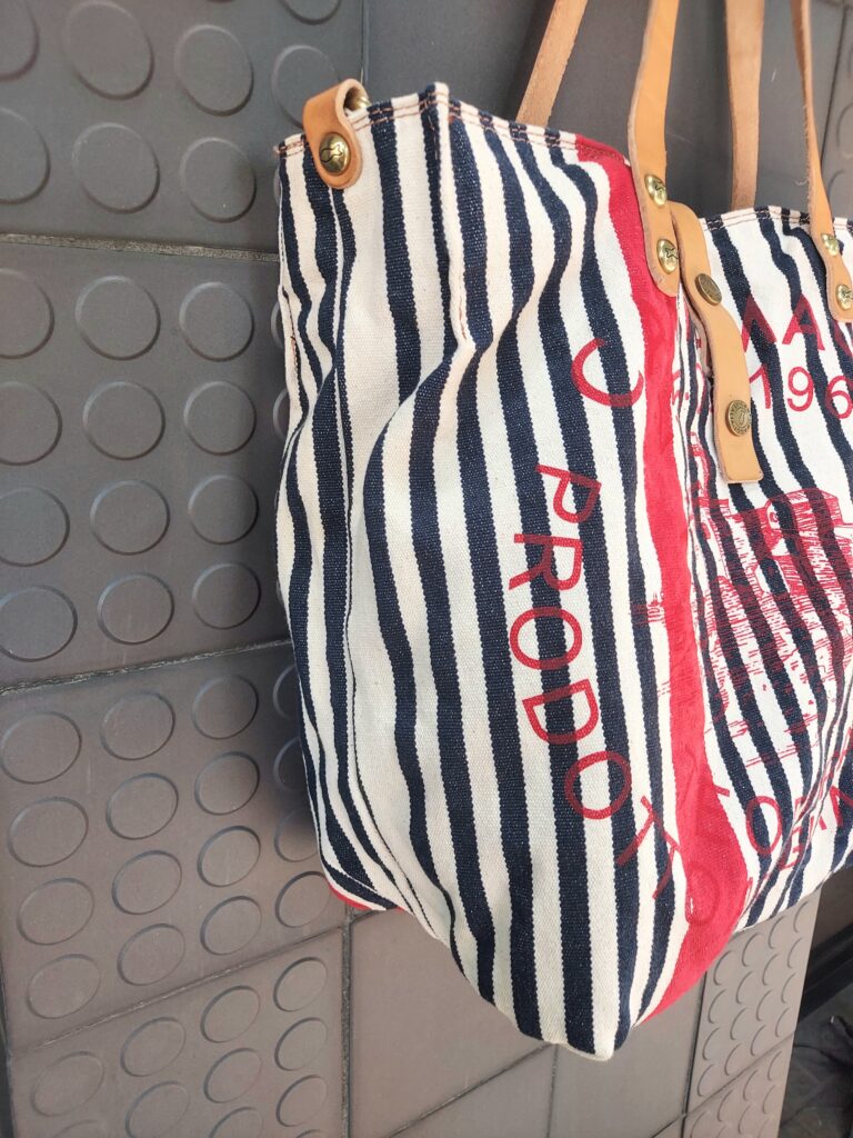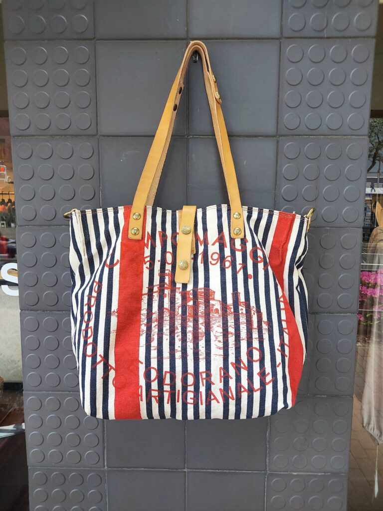 ソフトなキャンバス素材にストライプ、格好良い定番トートの新柄が入荷いたしました。長財布が余裕で入るファスナーポケット、イタリアのオシャレに必須のペンホルダーが内側に付いて使い勝手も◎