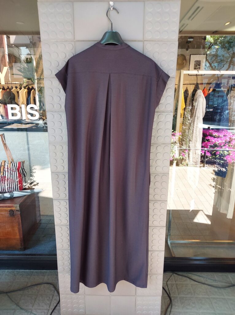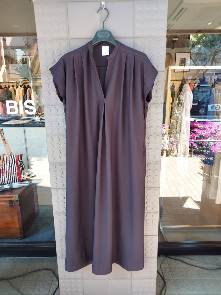 肩や身頃のタックからの程好いドレープが綺麗なキーネック・ワンピース。軽いシャリ感のあるサラッとした素材に軽く二の腕のかかるノースリーブで、上品なカジュアルをお楽しみ下さい。