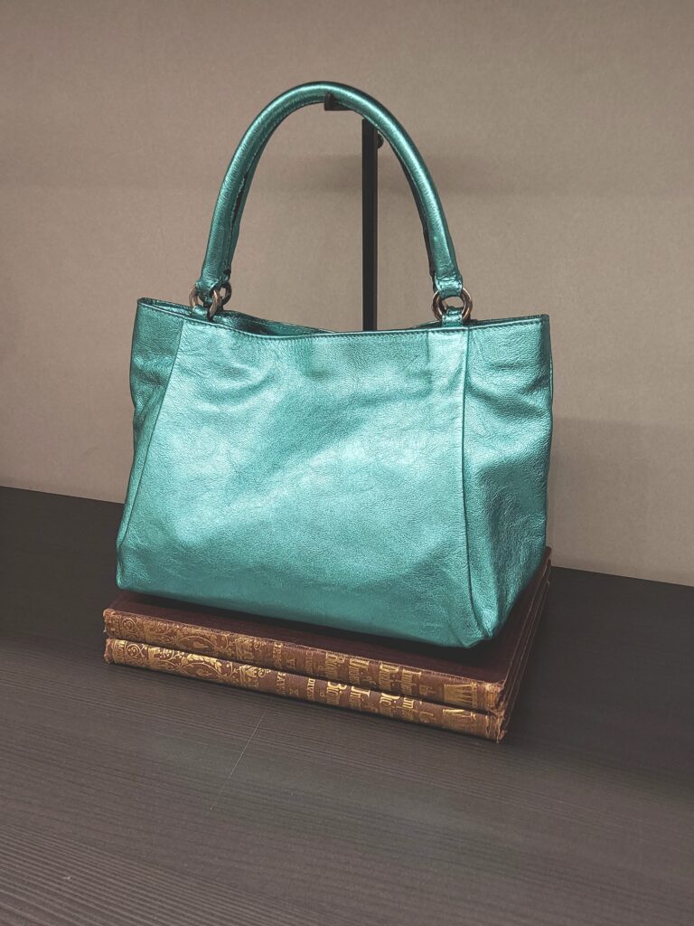 綺麗な色とソフトな光沢が目を引くミニトート。小さい見た目で品良く持つイメージですが、マチ幅があるので意外と物の入りが良いのは嬉しいポイントです。