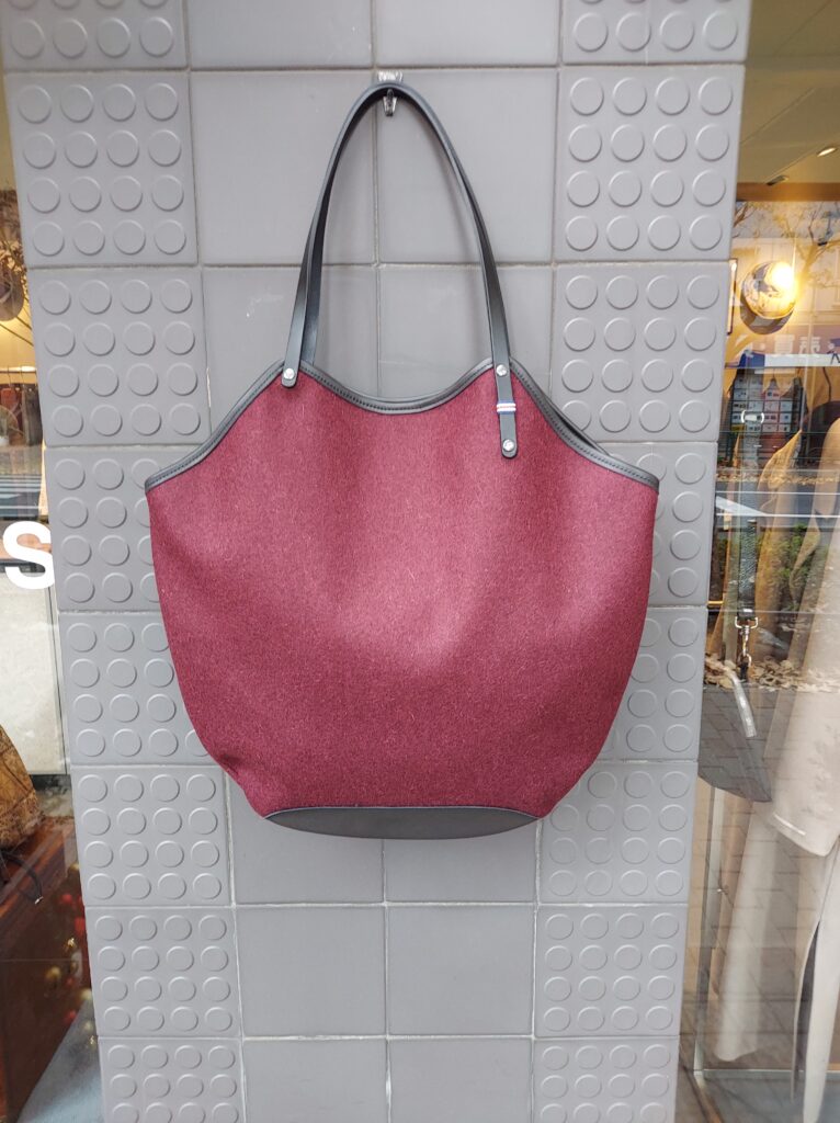 ソフトで軽いフェルト素材のトートバッグ。ボトムや口元など要所にレザーを使い、雰囲気を整えています。カジュアルなデザインと落ち着いたカラーで幅広いコーディネートに合わせられます。
