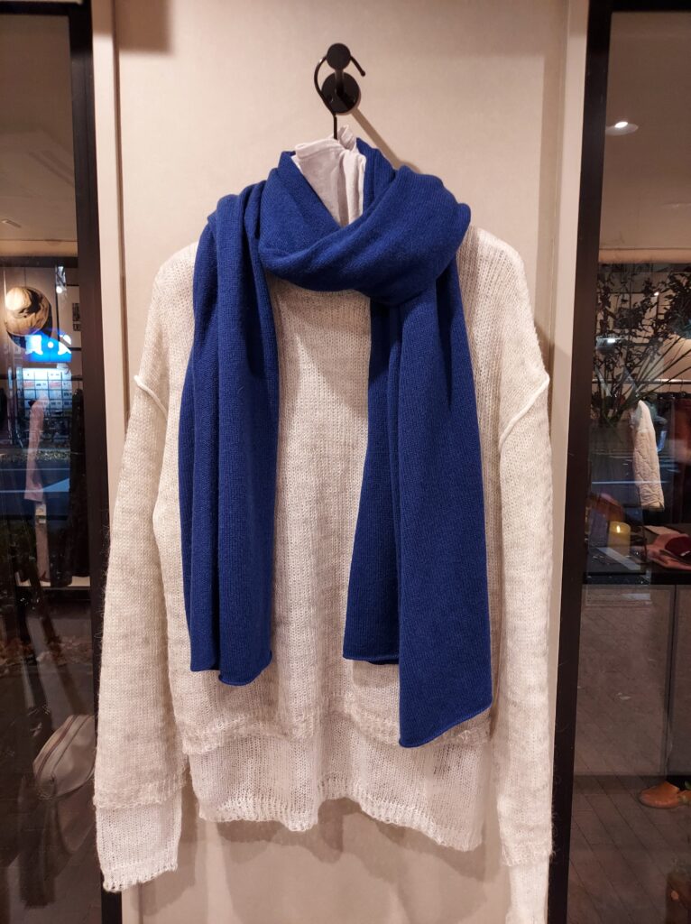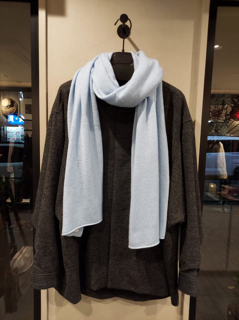 ふんわりニットのカシミヤ・ストール。ソフトな肌触りに綺麗な色で寒い冬に活躍してくれます。