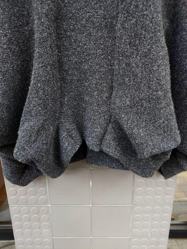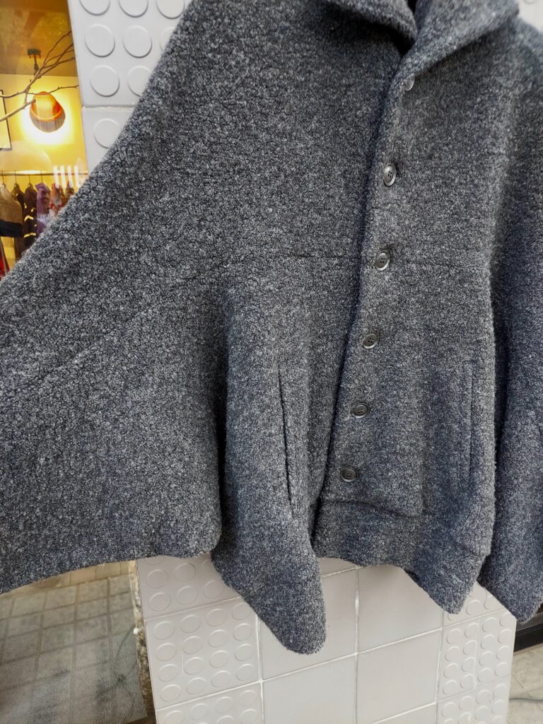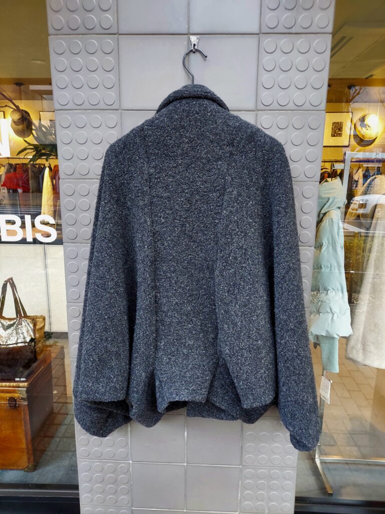 ドルマンスリーブのウールコート。裾の広がりを抑えることで絶妙なバランスに仕立てています。